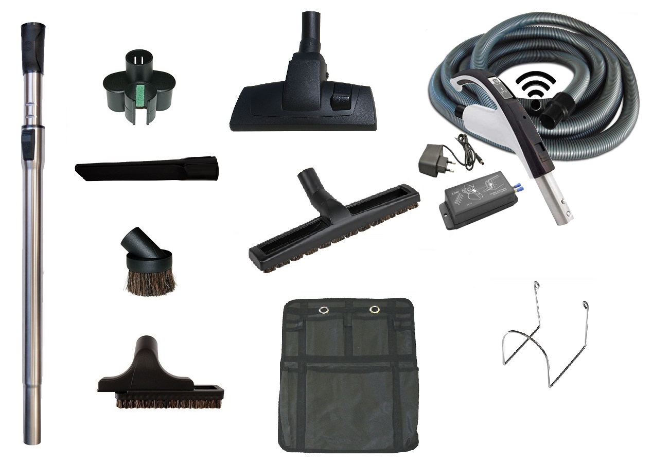 Set de nettoyage Premium Deluxe ‘Poussière’ avec flexible de 9.10m avec poignée à cran d’arrêt et commande Wifi avec Recepteur + accessoires