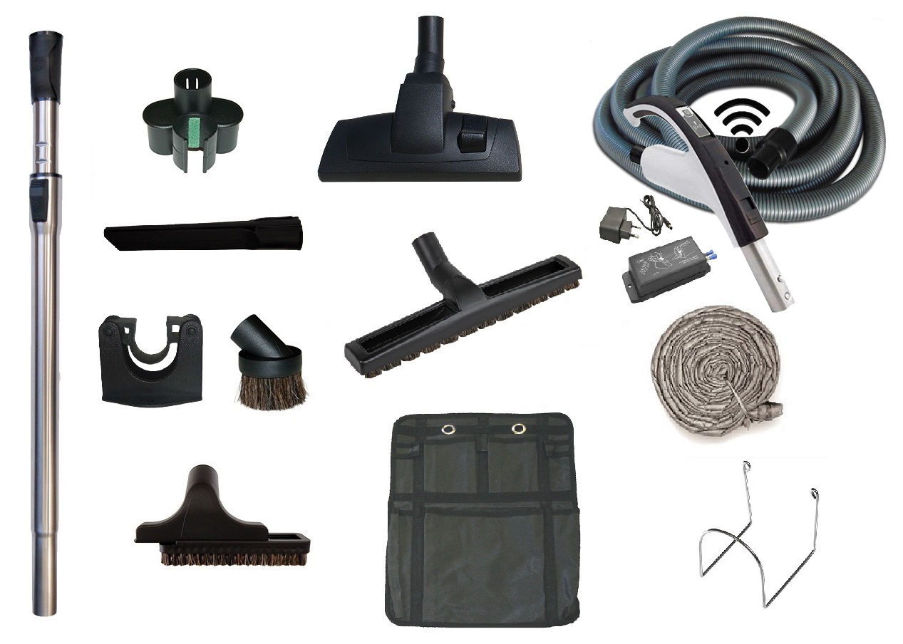 Set de nettoyage Premium Prestige ‘Poussière’ avec flexible de 10.6m avec poignée à cran d’arrêt et commande Wifi yc Recepteur + accessoires